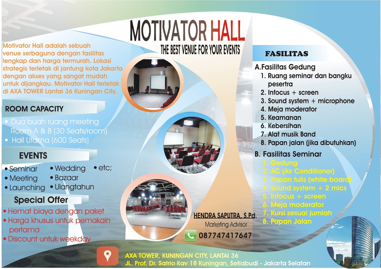Sewa Gedung Murah "Motivator Hall" Jakarta Selatan