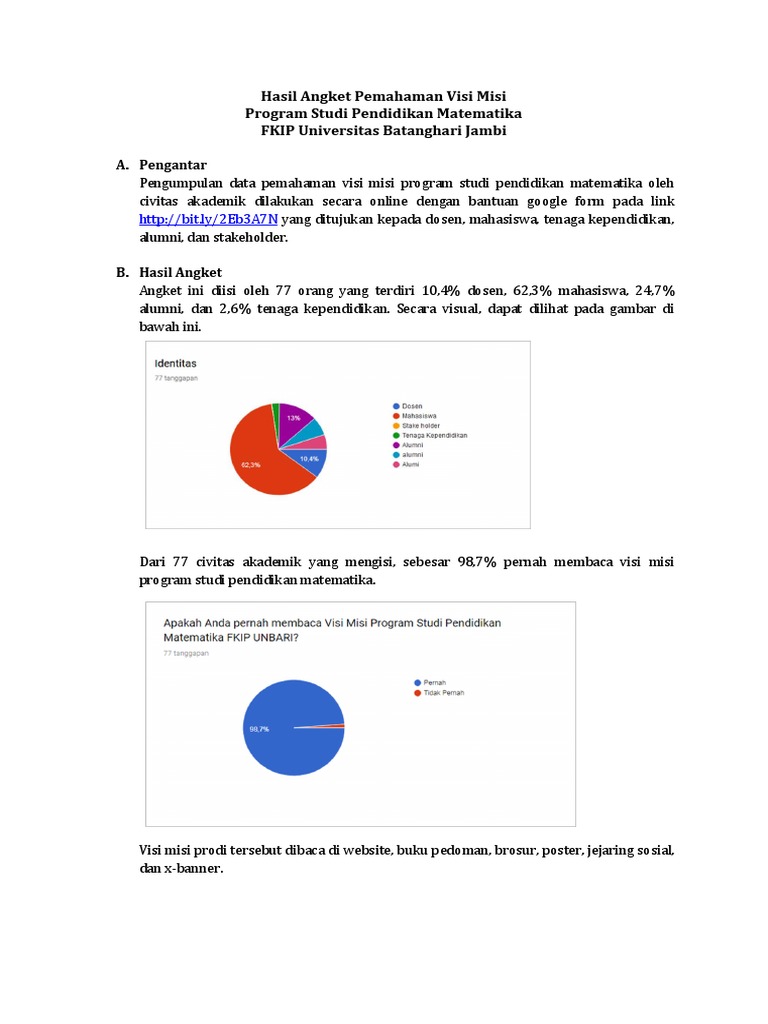 Hasil Angket Pemahaman Visi Misi Program Studi Pendidikan Matematika FKIP Universitas Batanghari Jambi