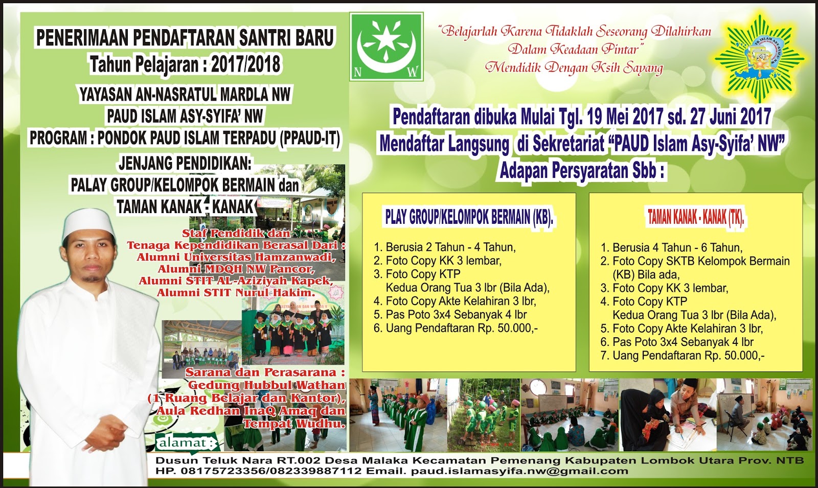 PAUD Islam Asy-Syifa' NW: BROSUR PENERIMAAN SANTRI BARU 2017/2018