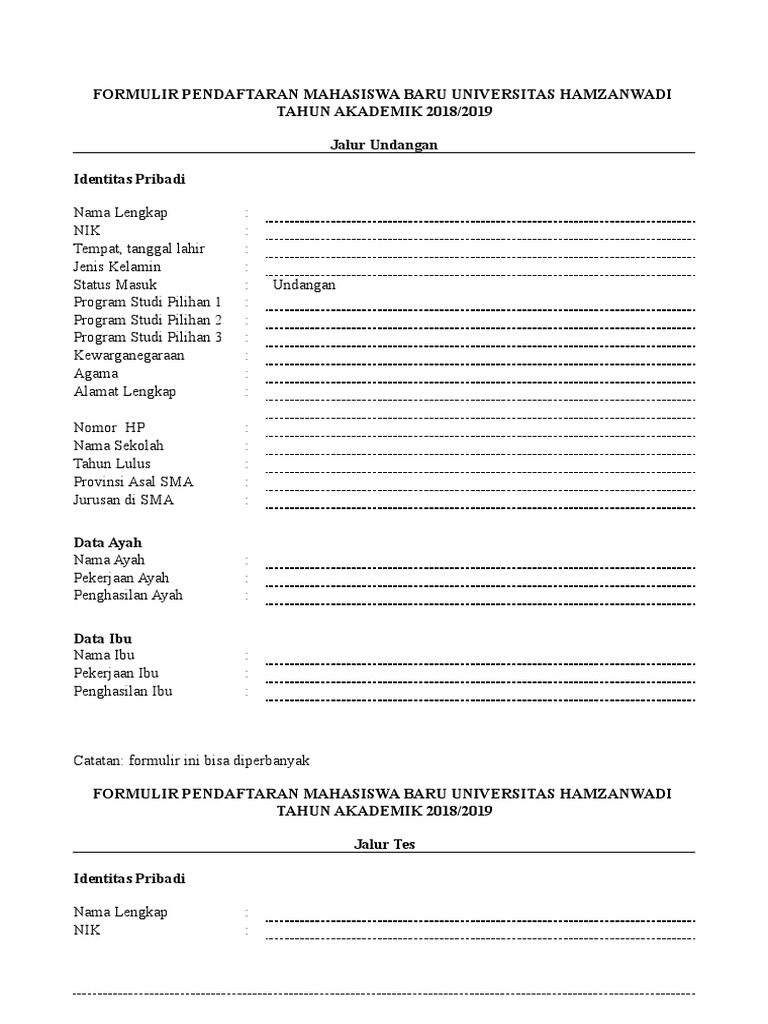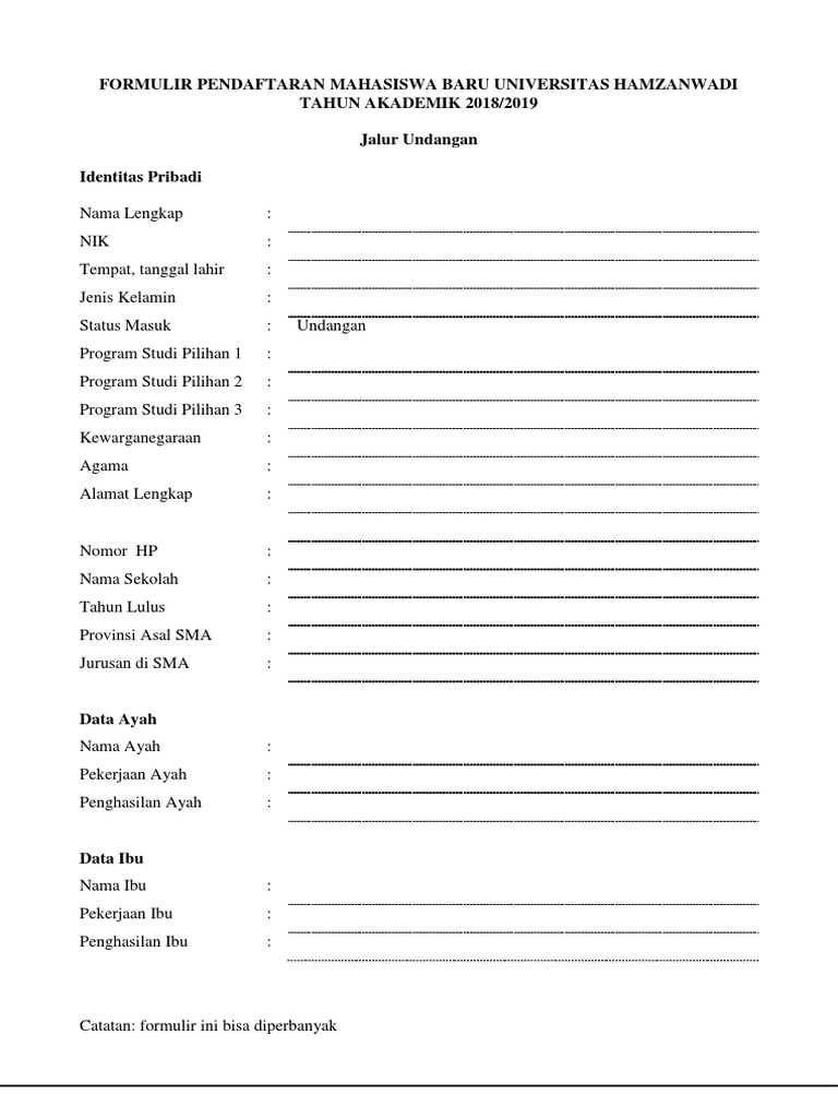 FORMULIR PENDAFTARAN MAHASISWA BARU UNIVERSITAS HAMZANWADI.docx