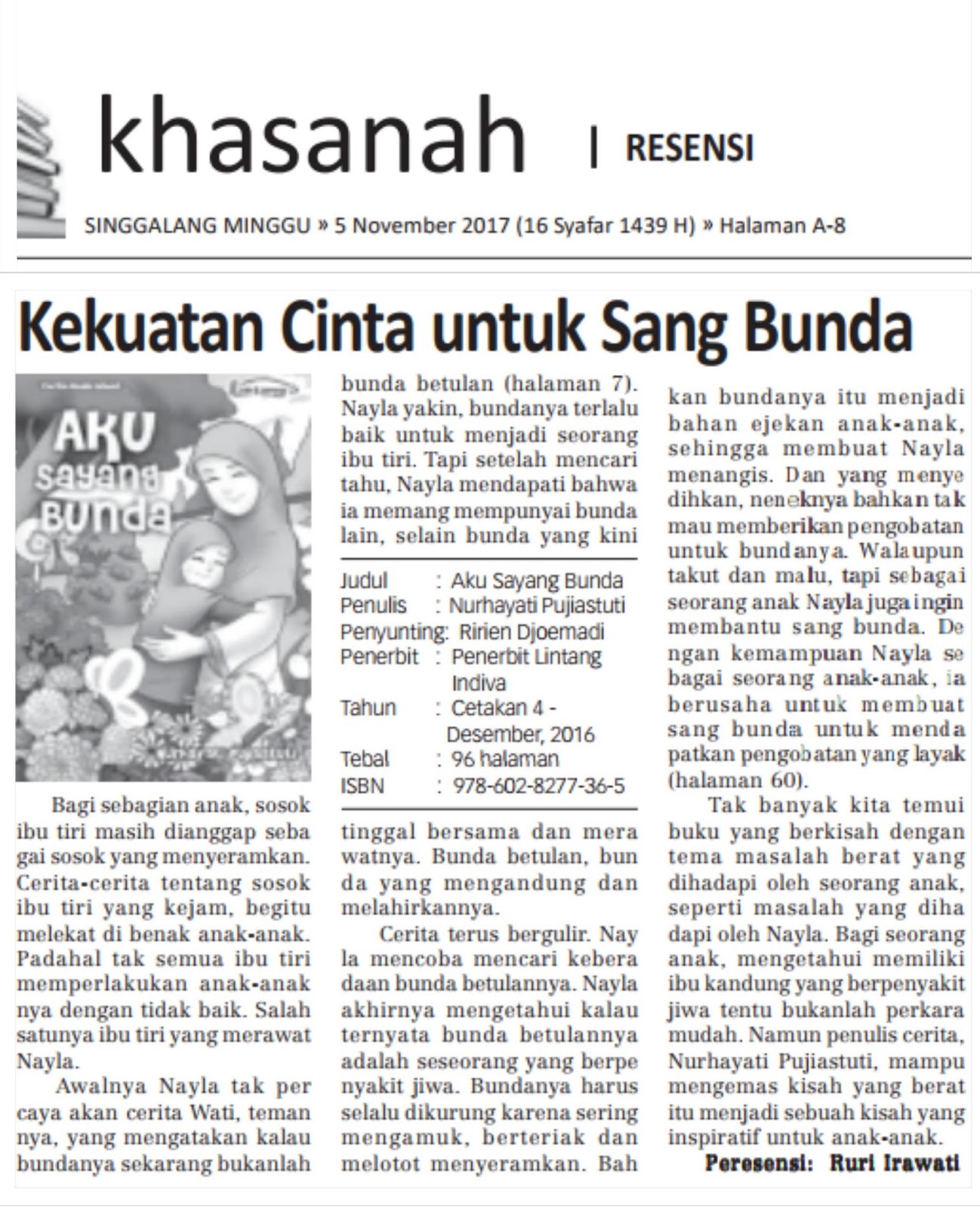 rurirawati: Resensi Buku dimuat di Harian Singgalang 5 november 2017: Kekuatan Cinta untuk Sang Bunda