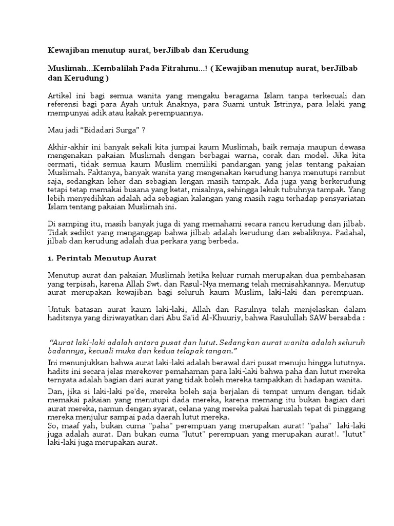 DOC) Dakwah Mengenai Kewajiban Menutup Aurat Pada Wanita | Hario …