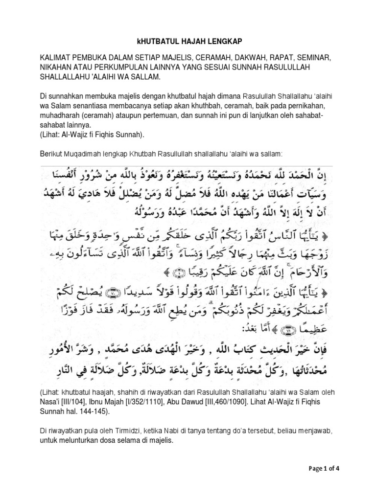 Contoh Khutbah Nikah (SINGKAT, BAHASA ARAB & INDONESIA)