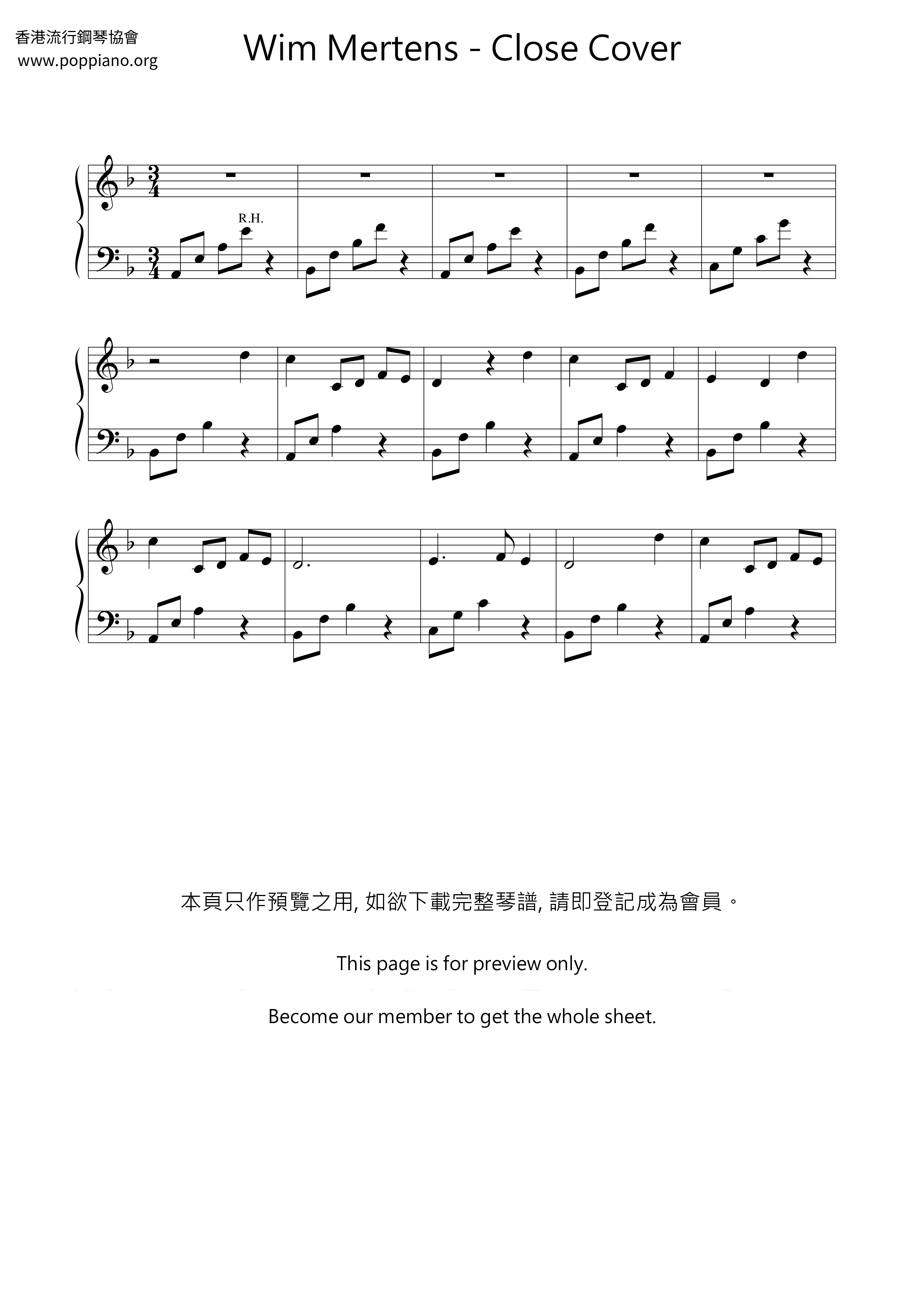 Wim Mertens-Close Cover Sheet Music pdf, - Free Score Download