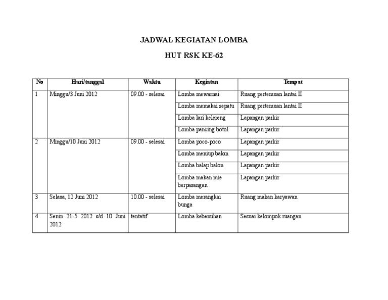 Contoh Jadwal Kegiatan Lomba - Ada Lomba
