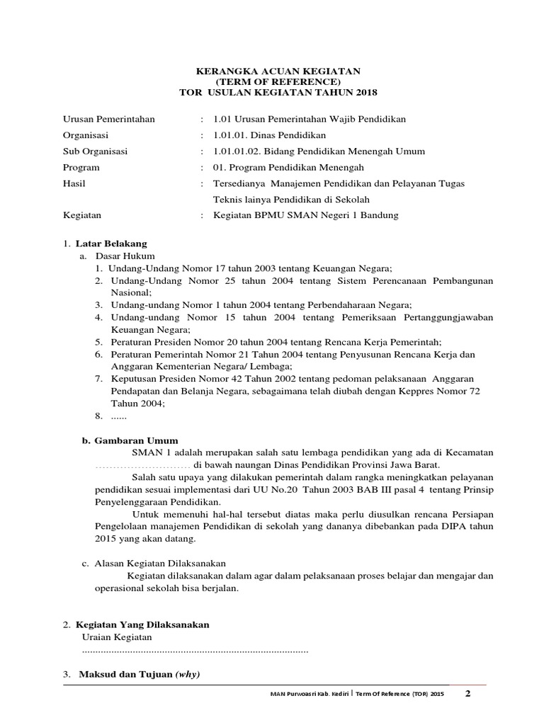20+ Contoh Kerangka Acuan Kerja (KAK) Pengadaan Barang dan Jasa …