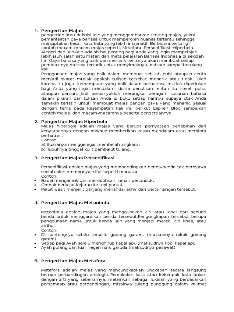 27 Macam Macam Majas Beserta Pengertian dan Contohya - MAHASISWAISLAM