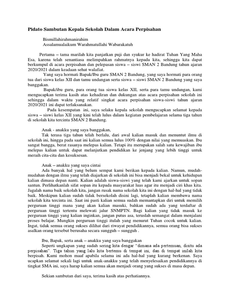 DOC) Contoh Pidato atau Sambutan Perpisahan MTs/SMP | Gembel Pulsa - Academia.edu