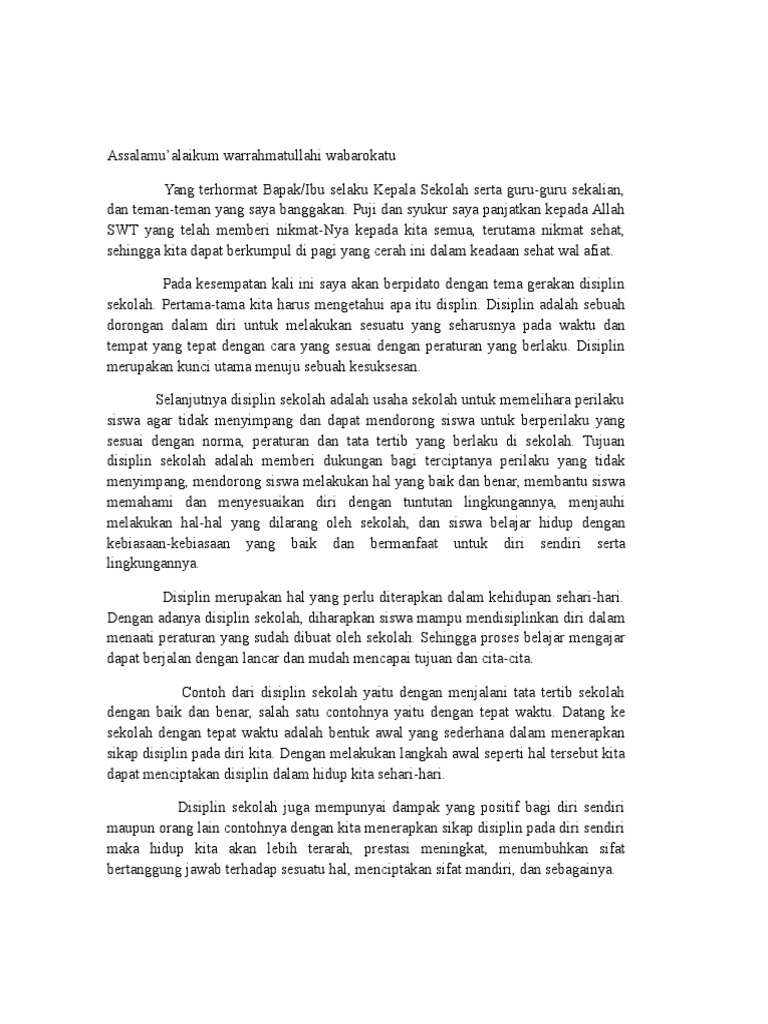 Contoh Pidato Tata Tertib Sekolah | Teori Sekol…
