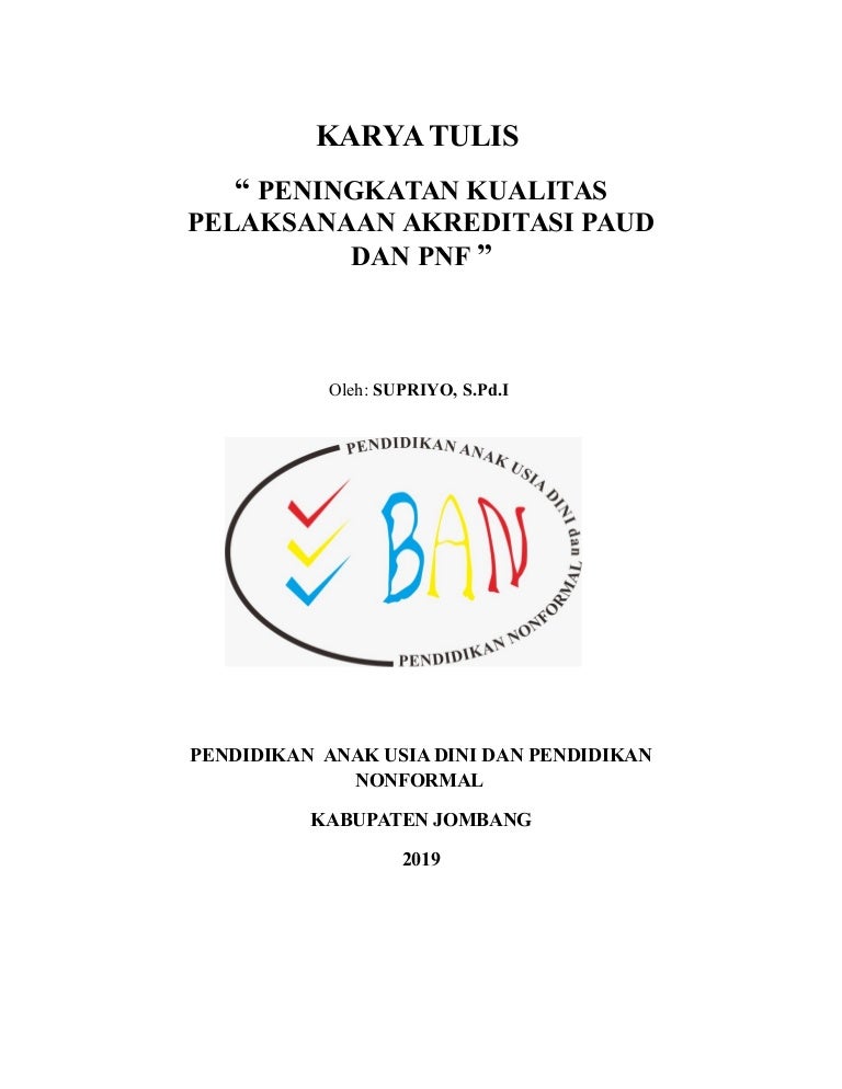KARYA TULIS " PENINGKATAN KUALITAS PELAKSANAAN AKRIDITASI BAN PAUD PNF