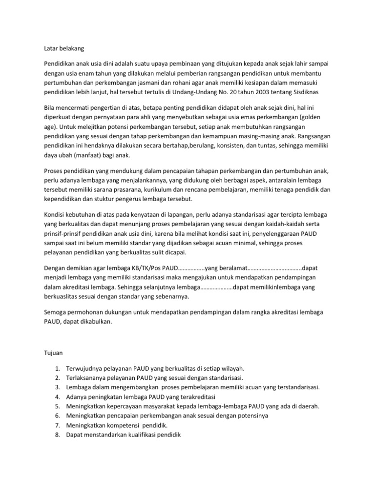 Contoh Proposal Ijin Pendirian Paud Download - Berbagi Contoh Proposal