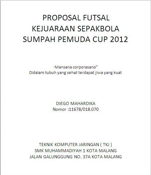 Contoh Cover Proposal Turnamen Futsal - Kumpulan Contoh Makalah Doc Lengkap