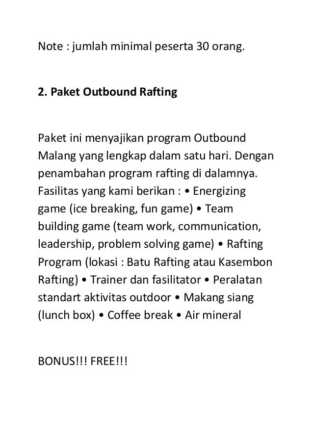 PDF) PENAWARAN HARGA PAKET OUTBOUND / TEAM BUILDING / OUTBOUND TRAINING 2 D 1 N | outbund bogor - Academia.edu