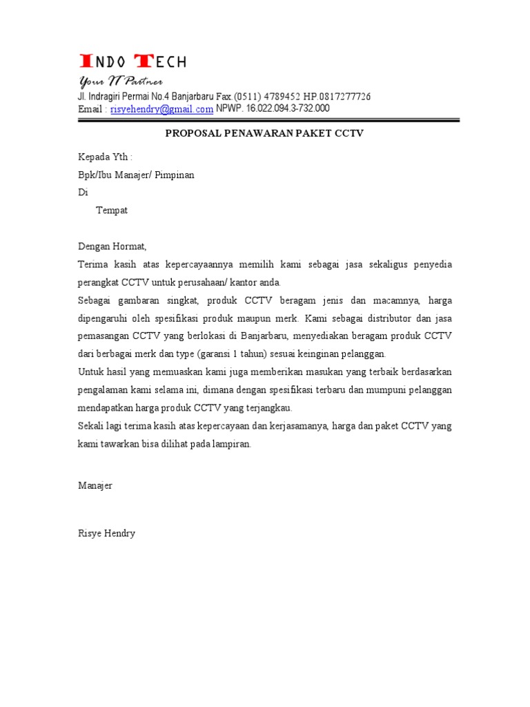 DOC) CONTOH PROPOSAL PENAWARAN KERJASAMA | Abi Be L O - Academia.edu