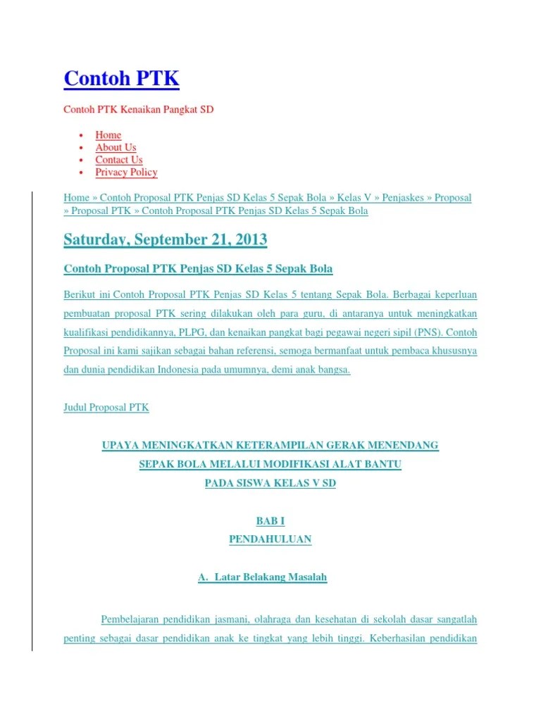 Contoh Proposal Ptk Sd Kelas 5 - Barisan Contoh