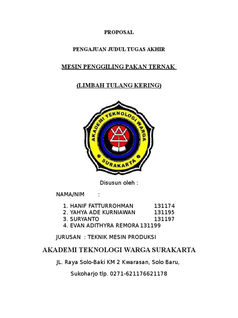 PDF) Proposal teknik mesin pdf | Wawan Susanto - Academia.edu