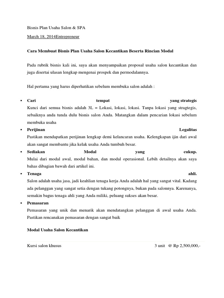 Contoh Proposal Usaha Salon Kecantikan Beserta Rincian Modal - Temukan Contoh