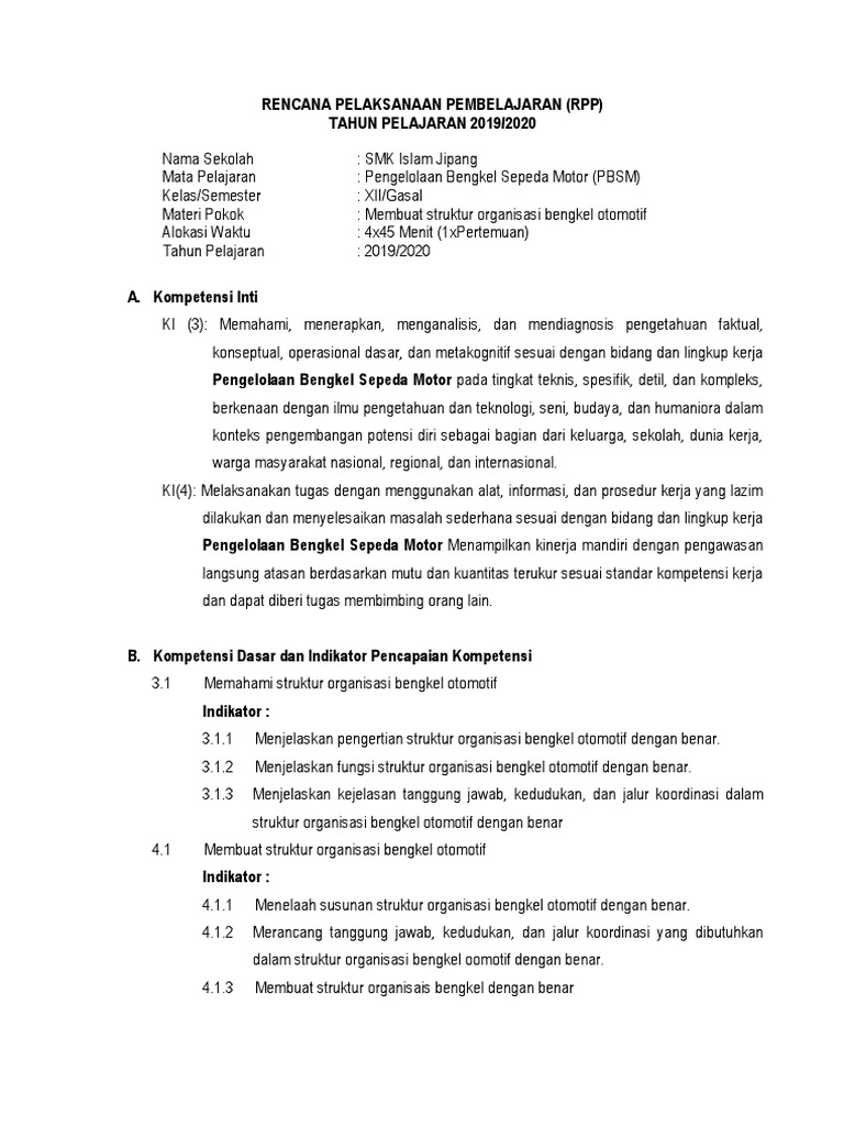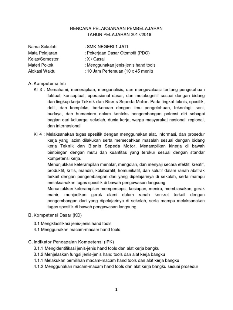 RPP Pekerjaan Dasar Otomotif