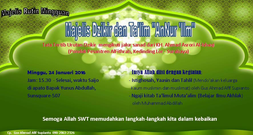Undangan Majelis Ta’lim Hiroshima dan Majelis Dzikir & Ta’lim “AnNur ‘Ilm” - Keluarga Muslim Indonesia Hiroshima