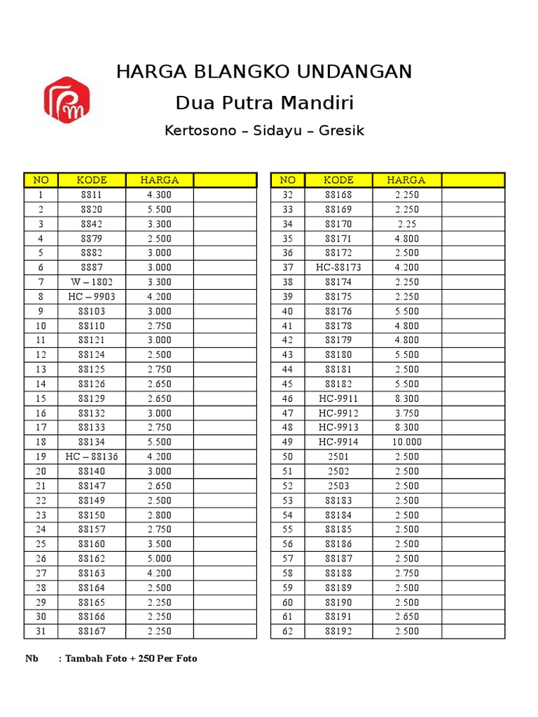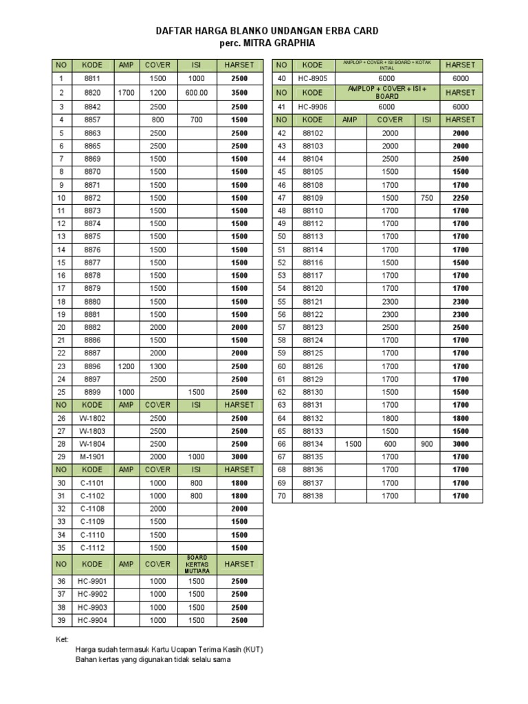 Daftar Harga Blangko Undangan HC NAVARA… - NAVARA Pusat Blangko Undangan | Facebook