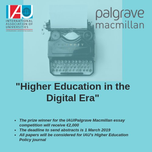 International Association of Universities (IAU) on Twitter: “NEW: IAU / Palgrave Prize Essay Competition is now open! We invite students, professors and researchers from Member institutions to apply. “Higher Education in the