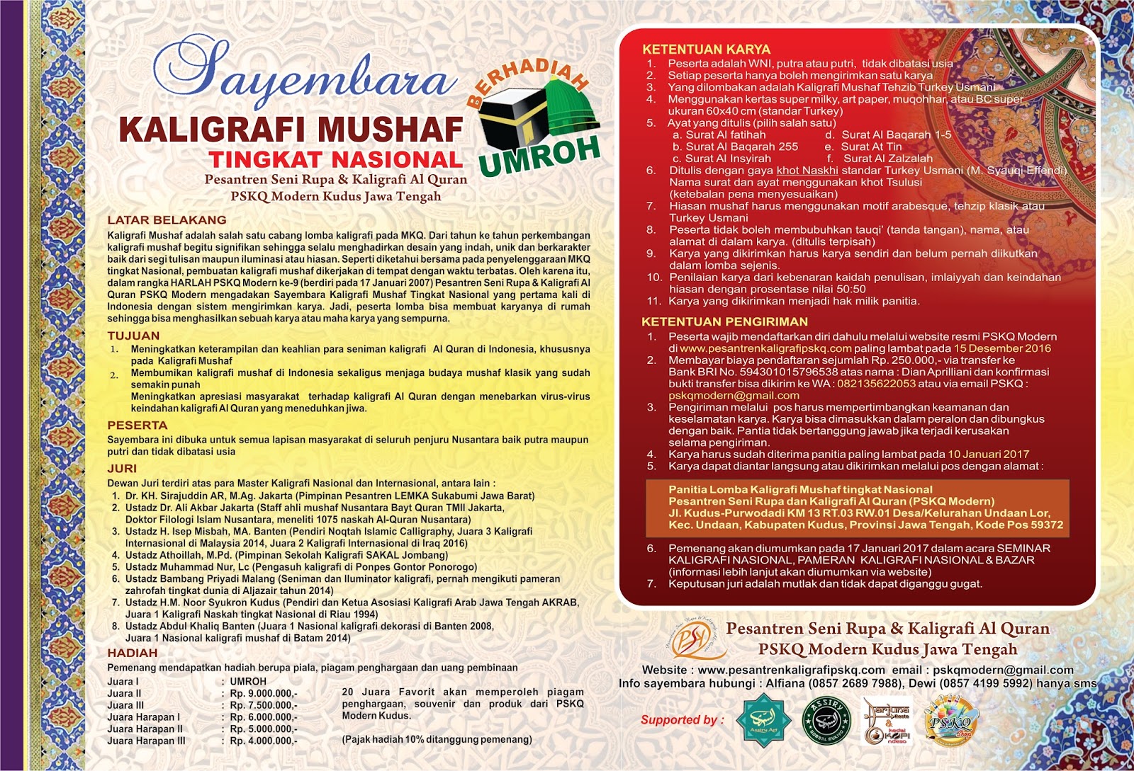 PSKQ MODERN MENYELENGGARAKAN SAYEMBARA KALIGRAFI MUSHAF TINGKAT NASIONAL | Pesantren Seni Rupa dan Kaligrafi Al Quran Modern PSKQ, pertama di Asia Tenggara