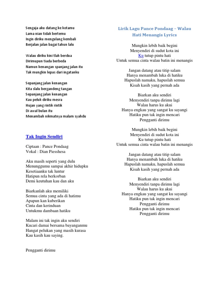 Here and Play Pance Pondaag - Walau Hati Menangis (Lirik) tune songs (6.23 MB) - Best 2020 Most Update Mp3 Download Site