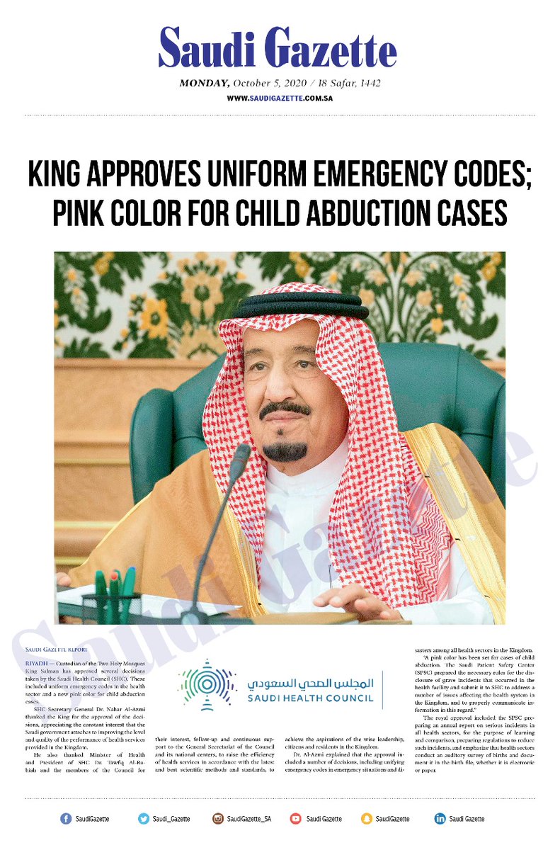 Saudi Gazette on Twitter: “#SaudiArabia’s King approves uniform emergency codes; pink color for child abduction cases https://t.co/pPeaejaA07