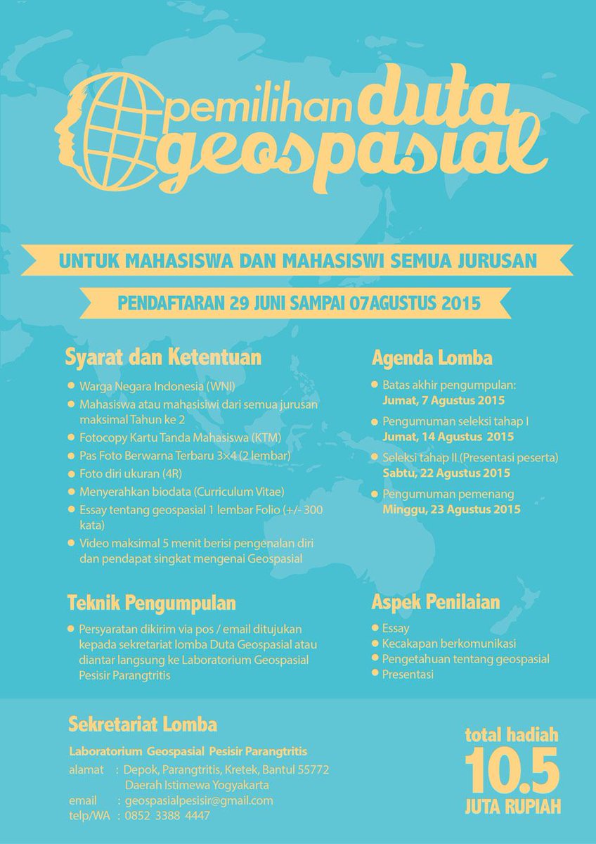 Badan Informasi Geospasial na Twitteru: “Ikutilah ajang Pemilihan Duta Geospasial yang diselenggarakan oleh Lab. Geospasial Parangtritis BIG @labgeopesisir http://t.co/wUSrXg00A5”