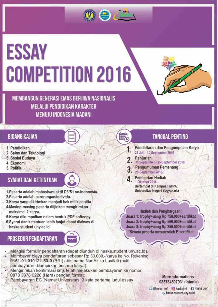 Lomba Menulis Esai Pendidikan Karakter Universitas Negeri Yogyakarta 2016 (DL September 2016) | LOMBA ASIA