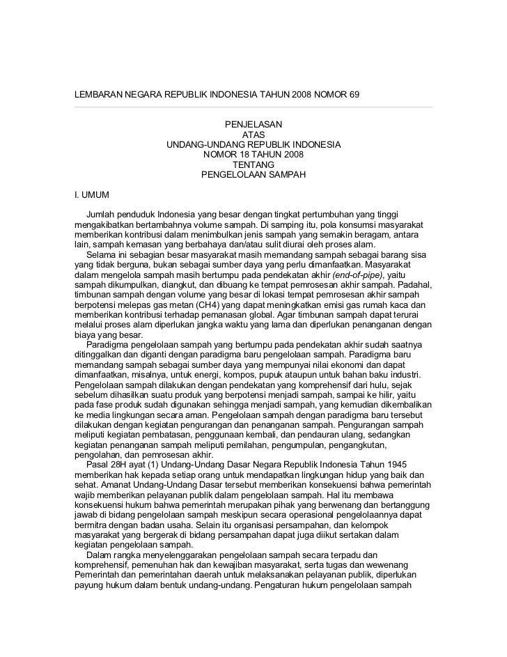 Undang-undang No. 18 Tahun 2008 tentang Pengelolaan-Sampah