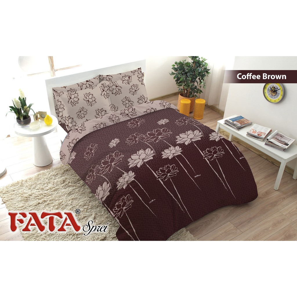FATA - Bed Cover Set Flat King 180x200cm Motif Coffee Brown | Shopee Indonesia