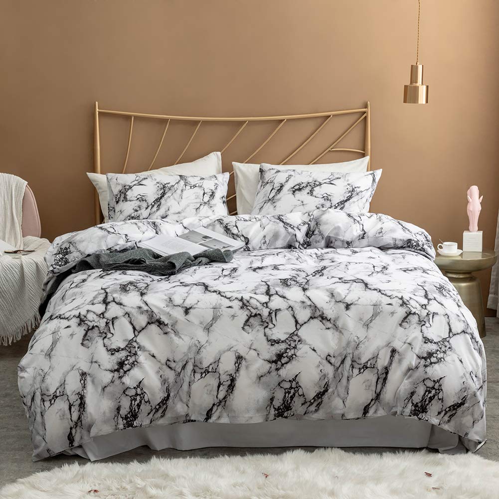Argstar 3 Pcs Queen Duvet Cover Set, Marble Printed Bedding Sets, Black Grey and White Abstract Comforter Cover with Zipper Ties, Soft Lightweight Microfiber, 1 Duvet Cover and 2 Pillow Shams: Amazon.sg: Home