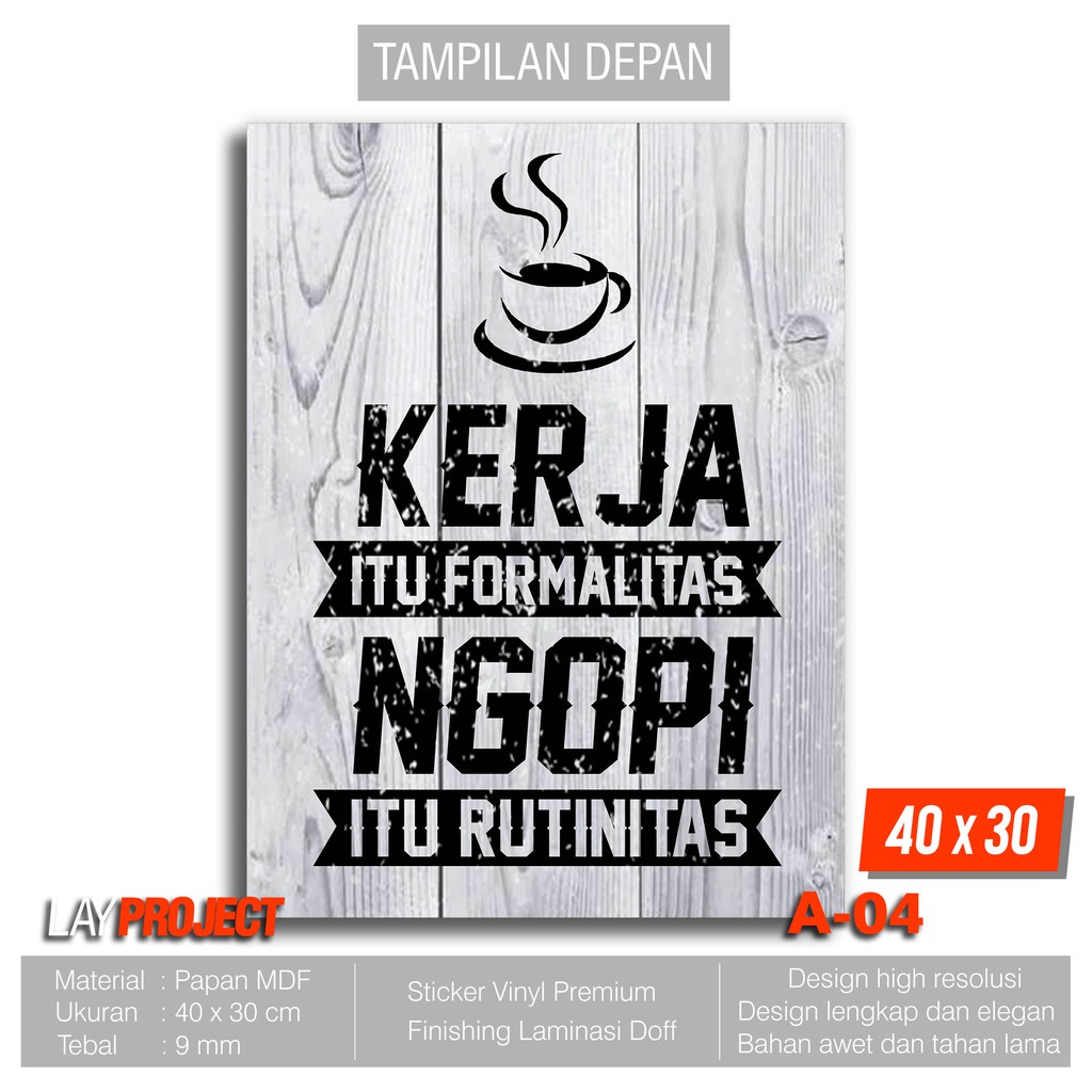 Hiasan Dinding Poster Kayu Wall Decor - Quotes Ngopi Kerja Itu …