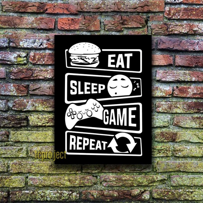 Jual EAT SLEEP GAME QUOTE POSTER - HIASAN DINDING POSTER KAYU …