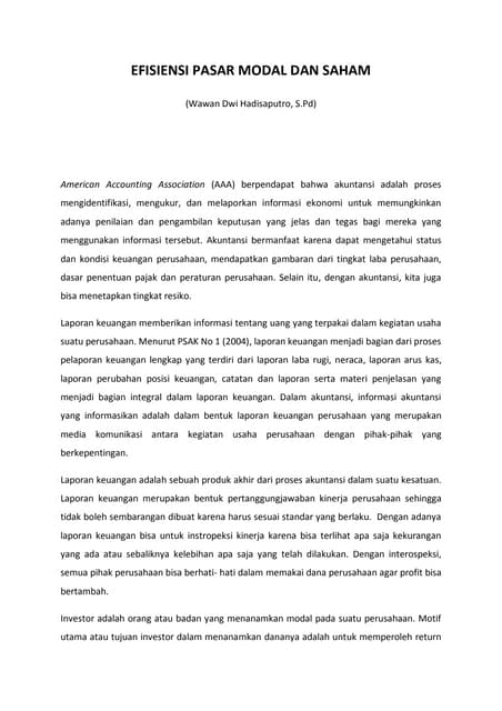 PDF) EFISIENSI PASAR MODAL DAN SAHAM | Wawan Dwi Hadisaputro - Academia.edu