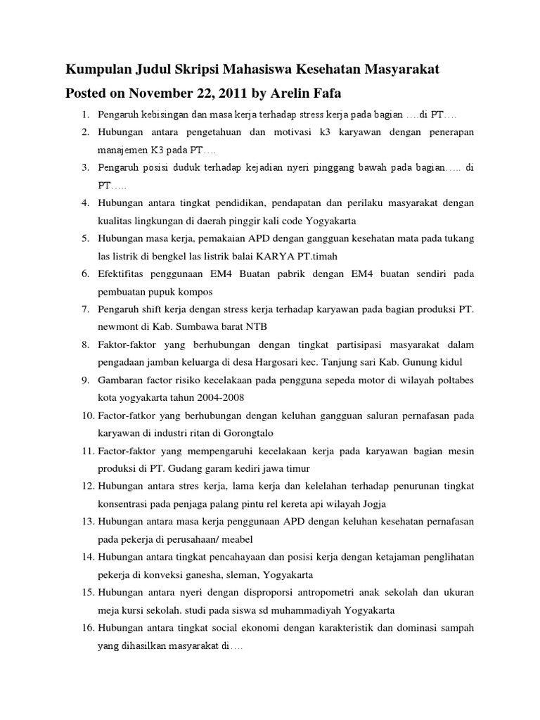 26 Judul Skripsi Kesehatan Masyarakat by Judul Skripsi - issuu
