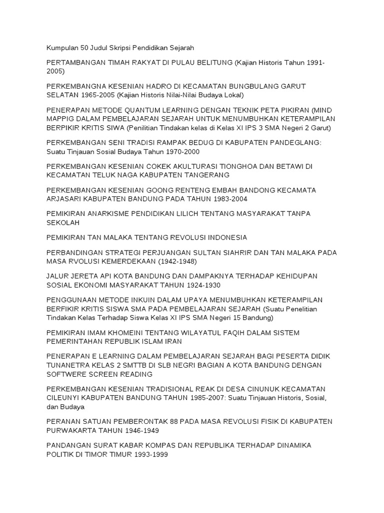 DOC) Kumpulan Judul Skripsi Pendidikan Sejarah | Jhu Jhu - Academia.edu