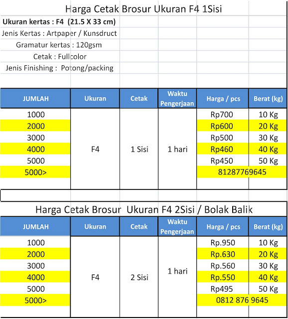 Cetak Brosur F4 2 Sisi AP 120 | Digital Printing Pekanbaru