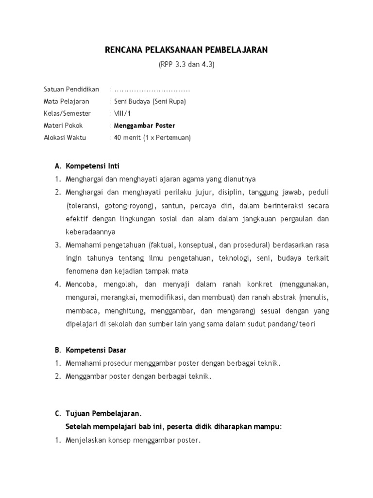 RPP Mapel Seni Budaya Kelas 8 ~ Satu Guru Satu Blog Guru Seni Budaya