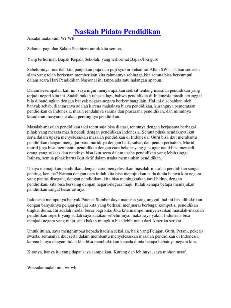 DOC) Contoh Teks Pidato Naskah Singkat Tema Pendidikan | Kang Taqwim - Academia.edu
