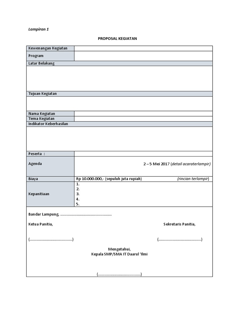 Contoh Proposal Kegiatan Umum Lampiran 1, 2, & 3 - CpArtikel