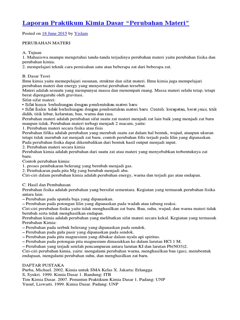 DOC) Laporan Praktikum Kimia Tentang Materi dan Perubahannya | M. Rizki Riswandi - KakaKiky - Academia.edu