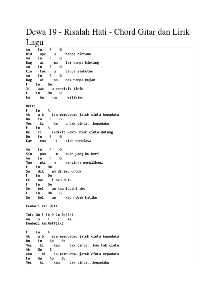 Chord dan lirik lagu dewa 19 risalah hati by Chord Zila - issuu