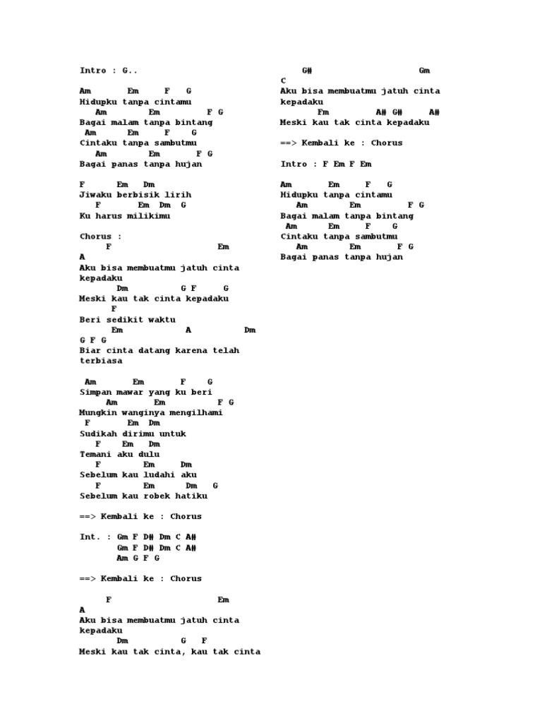 Aku Bisa Membuatmu Jatuh Cinta Kepadaku Chord