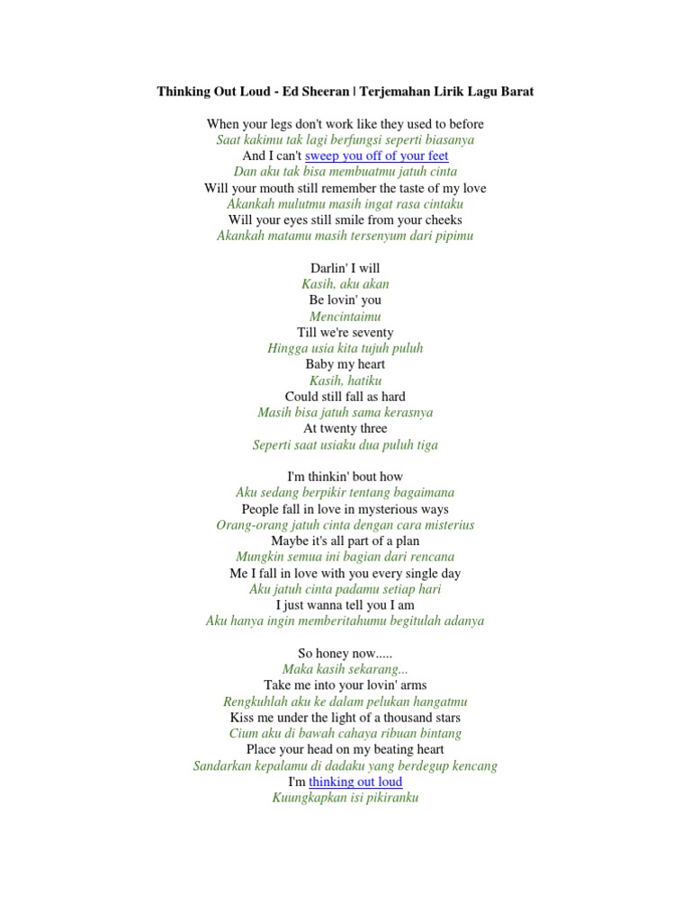 Lirik lagu ed sheeran thinking out loud dan terjemahan nya - www …