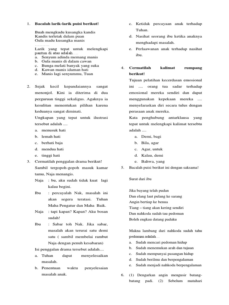 DOC) SOAL BAHASA INDONESIA KELAS 7 | debby andriani - Academia.edu