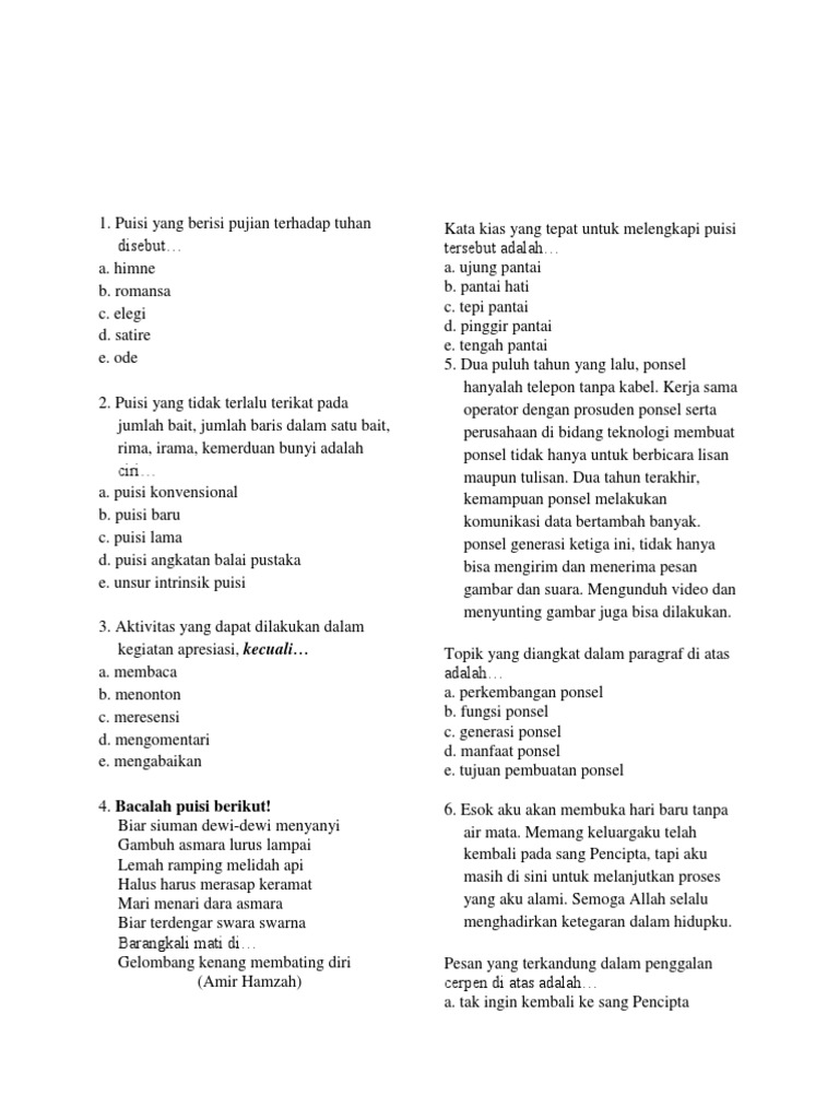 Soal Puisi Dan Ungkapan