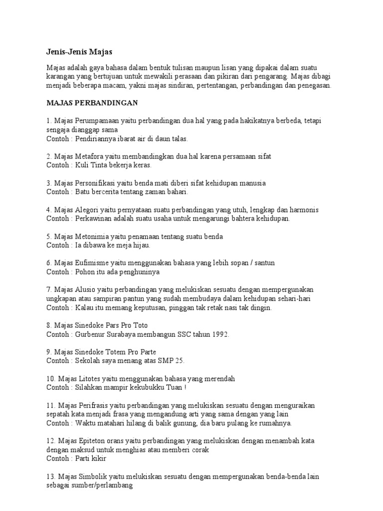 Macam Majas beserta Contoh - MARKIJAR.Com
