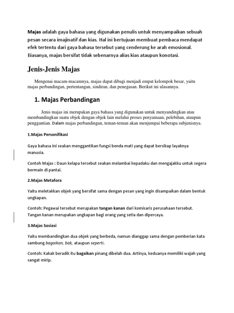 Majas: Pengertian, Tujuan, Jenis, dan Contoh Lengkap - Laman 2 dari 8 - FA Bahasa